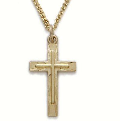 24K Gold Over Sterling Silver 3/4" Engraved Women Cross Necklace with Inner Cross on 18" Chain Review
