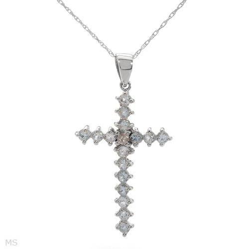 Cross Necklace With 0.59ctw Precious Stones - Genuine Aquamarines and Diamond in White Gold Length 18in . . ITEM INFORMATION: Material: 10K White Gold, Total Item Weight: 1.9g, Total Gemstone Carat Weight: 0.59ctw, Necklace Lock: Spring Ring, Pendant Length: 31.5 Mm, Pendant Width: 17 Mm. GEMSTONE INFO: Gemstone: Aquamarine, Quantity/ctw: 16/0.56ctw, Shape: Round, Color: Icy Sky Blue, Gemstone: Diamond, Quantity/ctw: 1/0.03ctw, Shape: Round, Color: Fancy Light Pink Enhanced, Clarity: I2. OTHER INFORMATION: Total Item Length: 18 Inch, Style: Cross, Gender: Ladies. Availability In Stock. Shipping Usually in 24 to 72 Hours. Free Standard Shipping! 100% Satisfaction Guaranteed! 30-Day Return Policy. Sku # JD01366562/