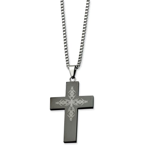Stainless Steel Fancy Black-plated Cross Pendant Necklace - 26 Inch - JewelryWeb Review