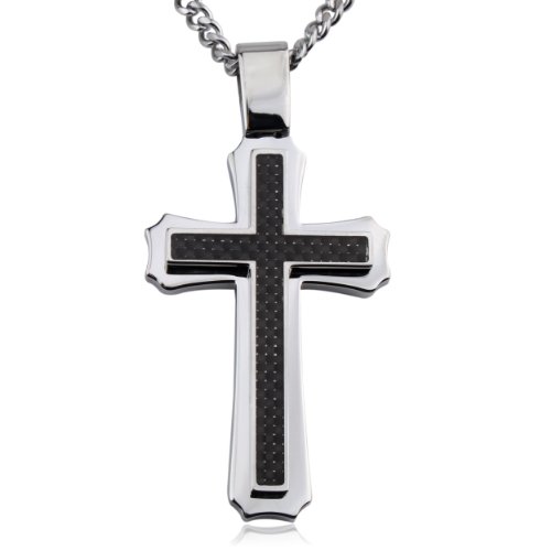 Stainless Steel and Carbon Fiber Cross with Black Ionic Plating Pendant, 22" Review