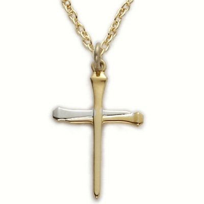 24K Gold Over Sterling Silver Cross Necklace in a 2-Tone and Nail Style Design Review