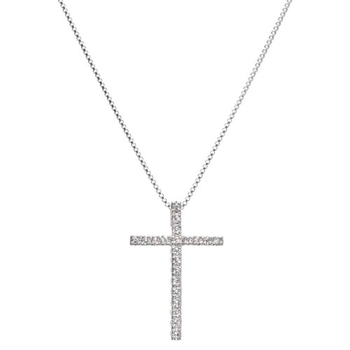 This sparkly cross Necklace is a celebrity style staple, seen on fashionable ladies such as Jennifer Aniston. Our interpretation features pave set cubic zirconia stones along a cross that measures 1.25 inches long by .75 inches wide. Cross has been rhodium electroplated to resemble platinum. This Necklace arrives with an 18 inch chain. If you would like to request a different chain. Note: 16" chains are free of charge, any other sizes must be purchased separately.Metal: .925 sterling silver jewelryStone: Cubic ZirconiaSetting: Pave set jewelryDimensions: 1.25 in. long, .75 in. wide